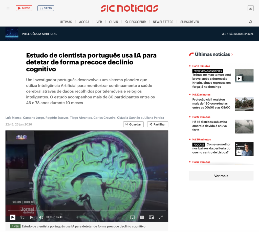 Estudo de cientista português usa IA para detetar de forma precoce declínio cognitivo